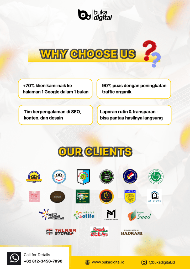 Kami bantu kelola media sosial Anda melalui strategi konten kreatif, jadwal posting teratur, interaksi dengan audiens, dan analisis performa.